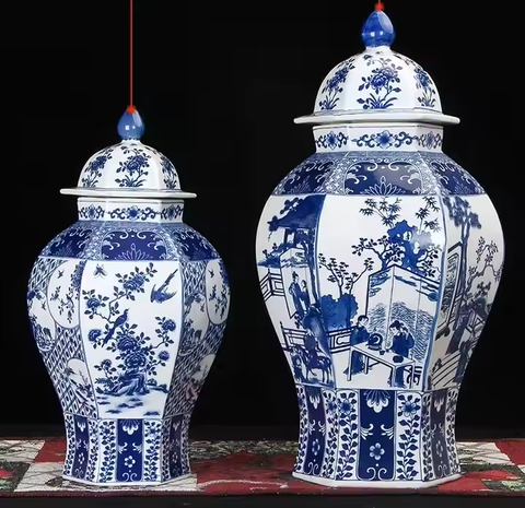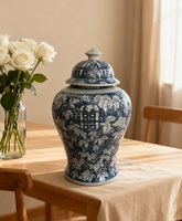 Dubbele Geluk Porseleinen Pot Voor Huisdecoratie Blauw En Wit Algemene Pot Huis Retro Porseleinen Ornamenten Antiek Versierde Vazen