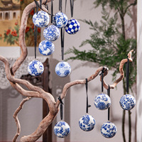 Blauwe En Witte Luxe Gemberbrood Pop Decoratie Keramische Bal Voor Kerstboom Decoratie