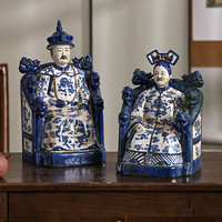 Keramische Beelden Van De Chinese Keizer En Keizerin In De Qing-Dynastie, Huwelijksgeschenk, Huisdecoraties Blauw En Wit Porseleinen Beeldje