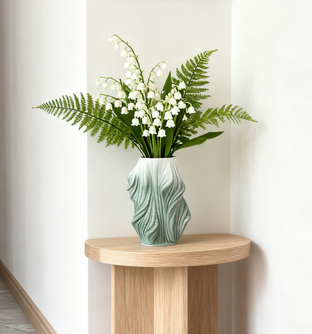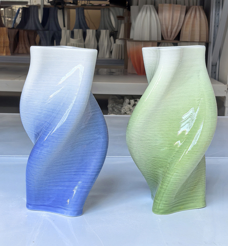 แจกันเซรามิกพิมพ์ลาย3D ยอดนิยมแจกันสีเขียวอ่อนแจกันเซรามิกพิมพ์ลาย3D ทันสมัยดีไซน์มีพื้นผิวเป็นเอกลักษณ์2025
