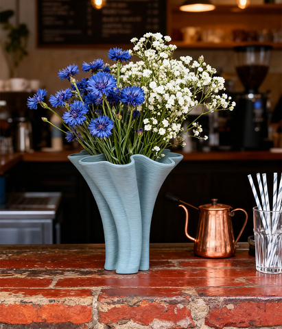 แจกันดอกไม้เซรามิกพิมพ์ลาย3D สีฟ้าอ่อนสำหรับตกแต่งบ้านและสำนักงานที่ทันสมัย