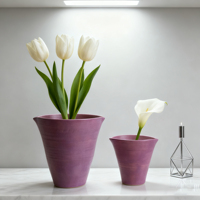 ชุดแจกันสโตนแวร์สีม่วงเรียบง่ายทันสมัยสไตล์โบฮีเมียนสุดชิคลาเวนเดอร์สโตนแวร์ที่วางดอกไม้โต๊ะรับประทานอาหารกลางงานขึ้นบ้านใหม่
