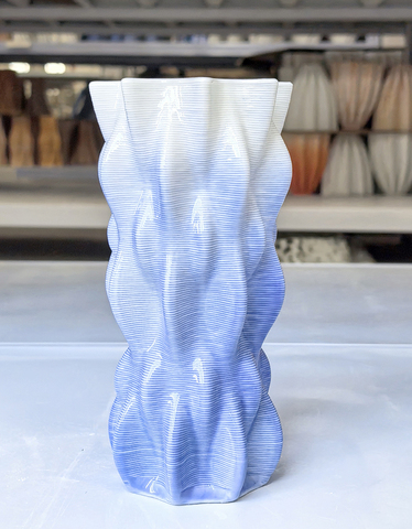 แจกันเซรามิกสีฟ้าสีขาวไล่ระดับสีที่ทันสมัยสำหรับการจัดดอกไม้และการตกแต่งการออกแบบตกแต่งภายในแจกันเซรามิกเครื่องประดับพิมพ์3D